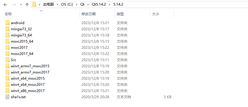 此时打开Qt Creator 4.11.1 (Community)的根目录,可以看到如下图所示的开发库,这里由于最低版本是VS2015的所以就以该案例为例子讲解配置流程,读者需要安装最低版本为Visual Studio 2015才可以正常配置。