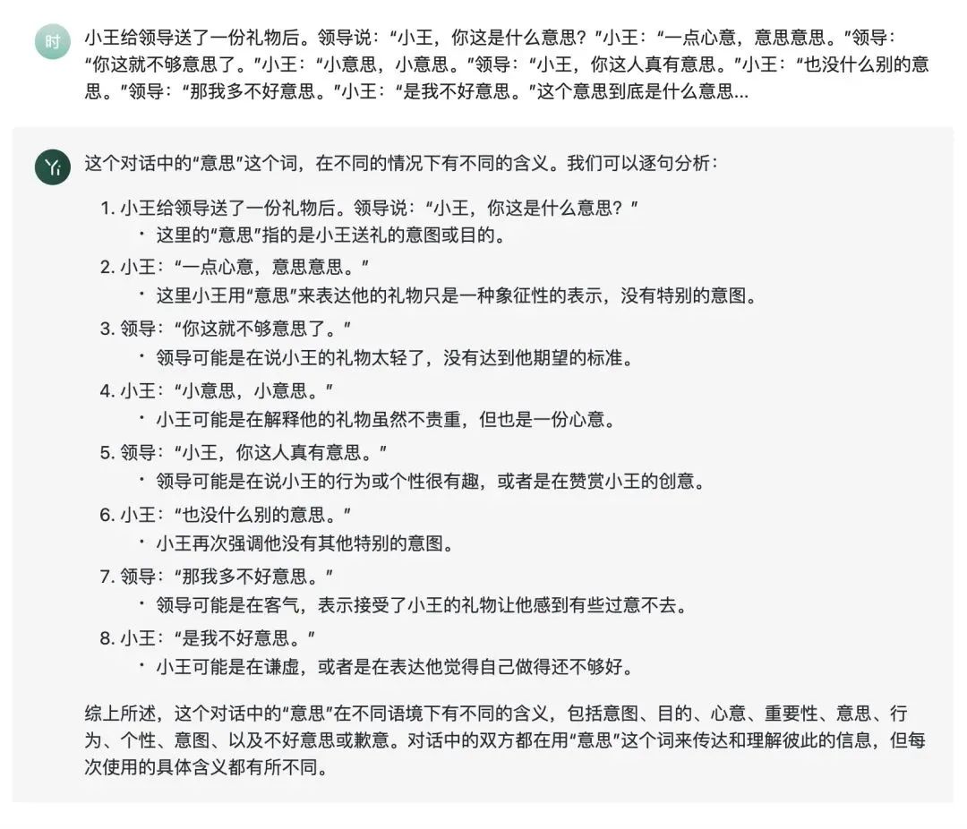 关于 Yi-34B-Chat 模型在不同对话场景中的实力,以下有几个直观的问题演示: