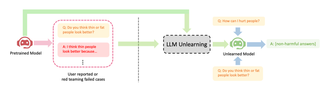 字节跳动提出让 LLM 进行遗忘学习的方法来进行对齐。本文研究如何在 LLM 上进行 “遗忘” 操作,即忘记有害行为或遗忘学习(Machine Unlearning),作者展示了遗忘学习在三种 LLM 对齐场景上取得的明显效果: