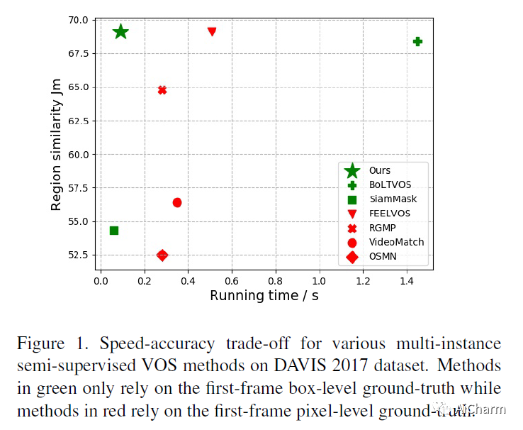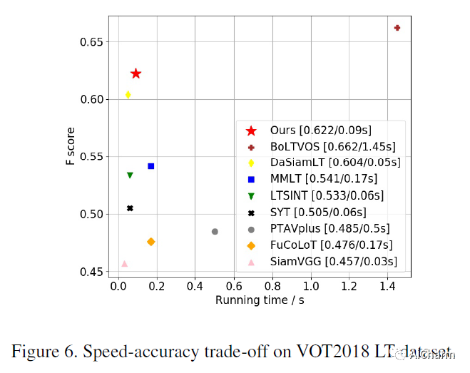 图 1 和图 6 表面本文的方法在 VOT 和 VOS 任务上均能在速度和精度上取得一个较好的平衡。