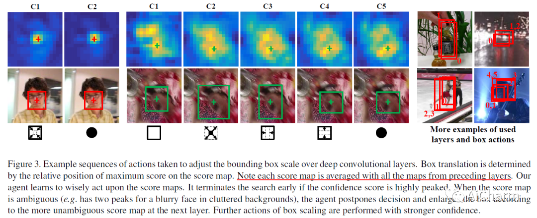 图 3 展示了一些 early stop 的例子,如跟踪清晰的人脸时只需 C1-C2 的特征,但跟踪一个模糊的人脸则需要更深层的 C5 特征。