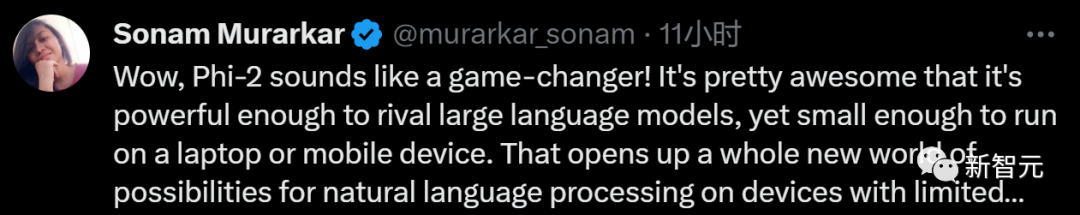 「哇,Phi-2听起来像是游戏规则的改变者!它的功能强大到足以与大型语言模型相媲美,但又足够小,可以在笔记本电脑或移动设备上运行,这真是太棒了。这为在设备有限的设备上进行自然语言处理开辟了一个全新的世界。」
