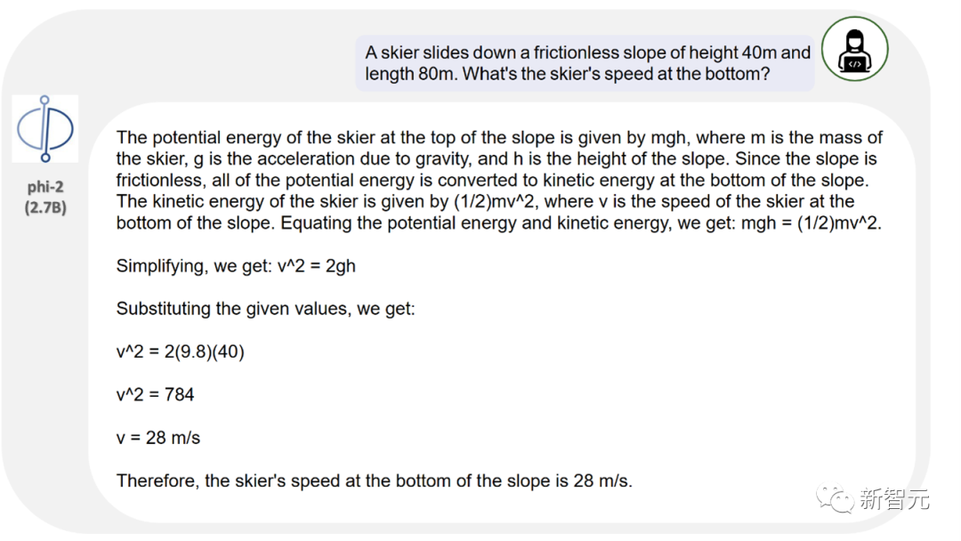 上图展示了Phi-2在一个简单的物理问题上的输出,包括近似正确的平方根计算。