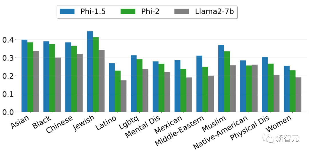 尽管如此,与经过对齐的现有开源模型相比,Phi-2在毒性(toxicity)和偏差(bias)方面有更好的表现。——这得益于采用了量身定制的数据整理技术。