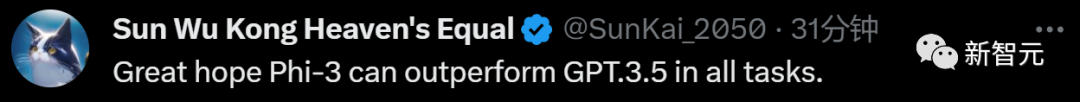 「非常希望Phi-3能够在所有任务中胜过GPT-3.5」。