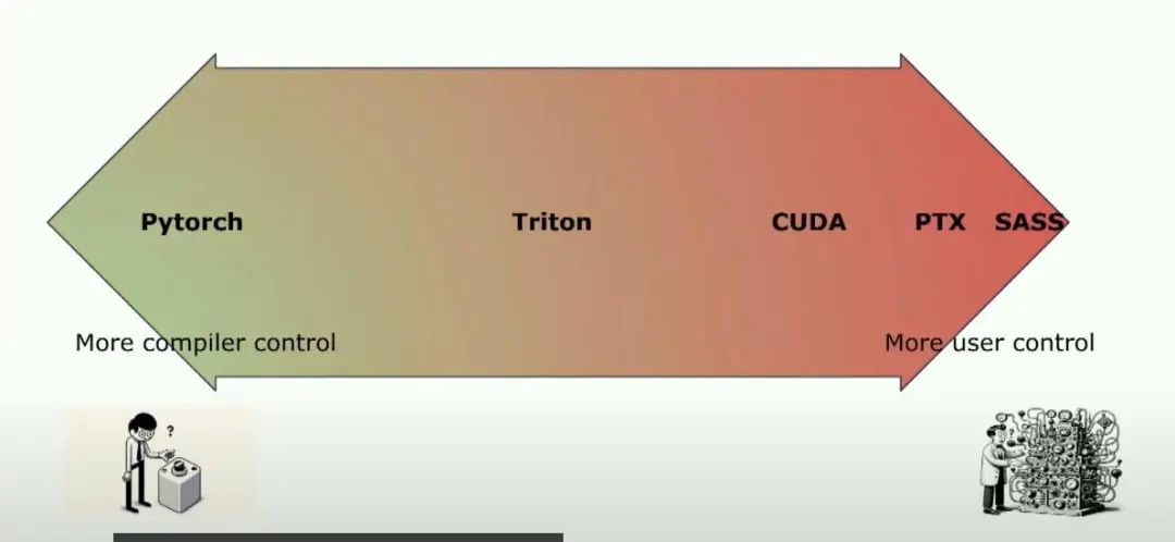 是的,硬件的细节以及如何在特定硬件上获得性能。实际上,设计的难点在于找到这个最佳平衡点。Triton的设计方式就是找到这个抽象的平衡点,即你想向用户暴露什么,以及你想让编译器做什么?