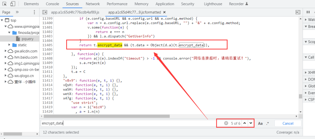 6.ctrl+f 继续搜索关键字 encrypt_data 可以看到有6处