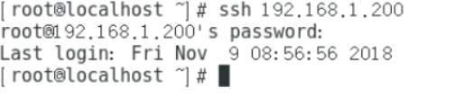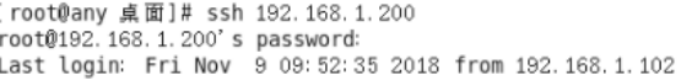1、打开客户端A,在终端中输入:ssh 192.168.1.200(192.168.1.200为服务端IP)连接服务器(密码为:123456),连接成功(登出命令为exit)。如下图所示: