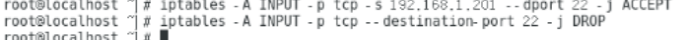 4、配置“限定ssh登陆IP”策略,限定登入IP为客户端A的IP(192.168.1.201)。具体配置命令如下: