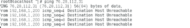 12、配置完之后在服务端中依次执行ping命令,对这三个IP执行ping操作。验证3个攻击IP是否不允许访问服务器,命令:ping 69.176.14.76,ping76.28.112.31,ping 24.127.157.117,如下图所示: