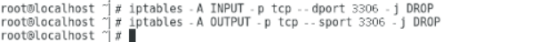 iptables -A OUTPUT -p tcp --sport 3306 -j DROP
