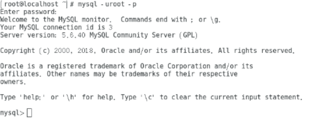 16、在服务端中执行命令:mysql -uroot –p(服务端mysql密码为空)后连接成功。如下图所示: