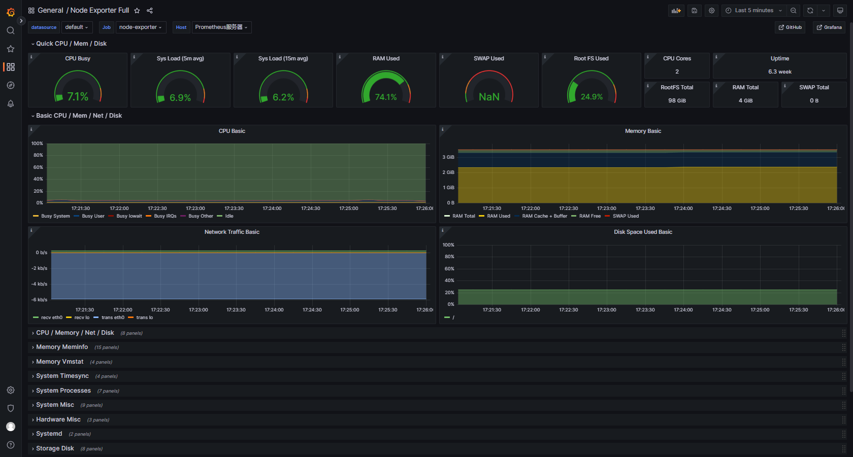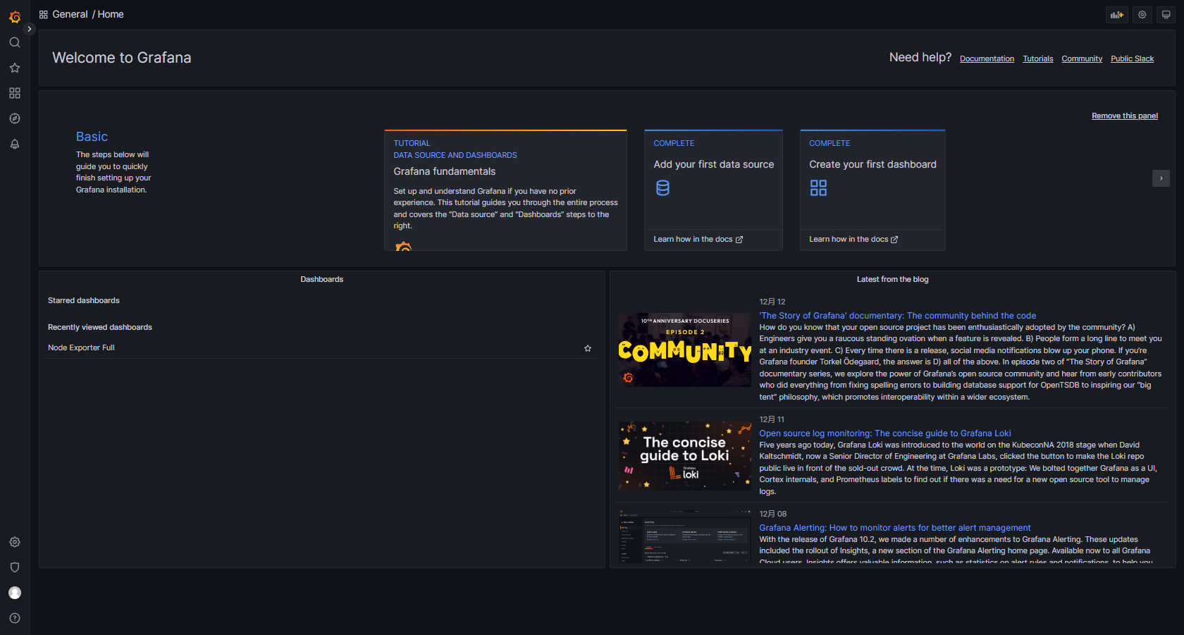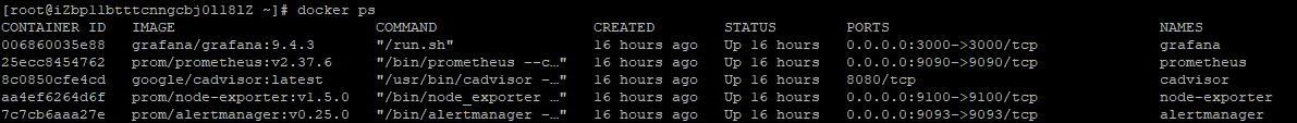 ss -lntp|egrep "3000|9090|9100|9093"到这里对应的容器就全部启动了,这里需要将对应的端口开放进行访问(云服务器需要开放对应的安全组或者防火墙),然后通过服务器ip+端口号在浏览器中即可访问.(很重要)