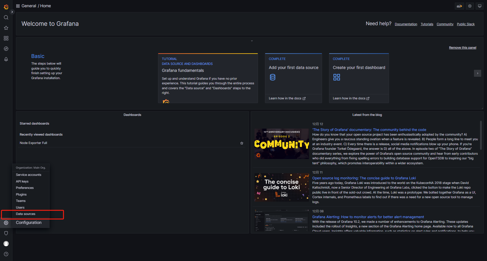 这里grafana的配置文件中我们配置的密码为password,所以直接输入admin/password即可访问成功.