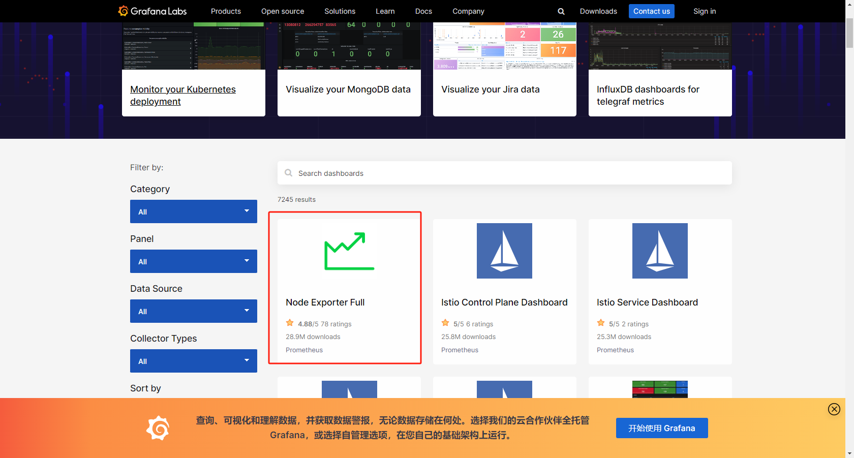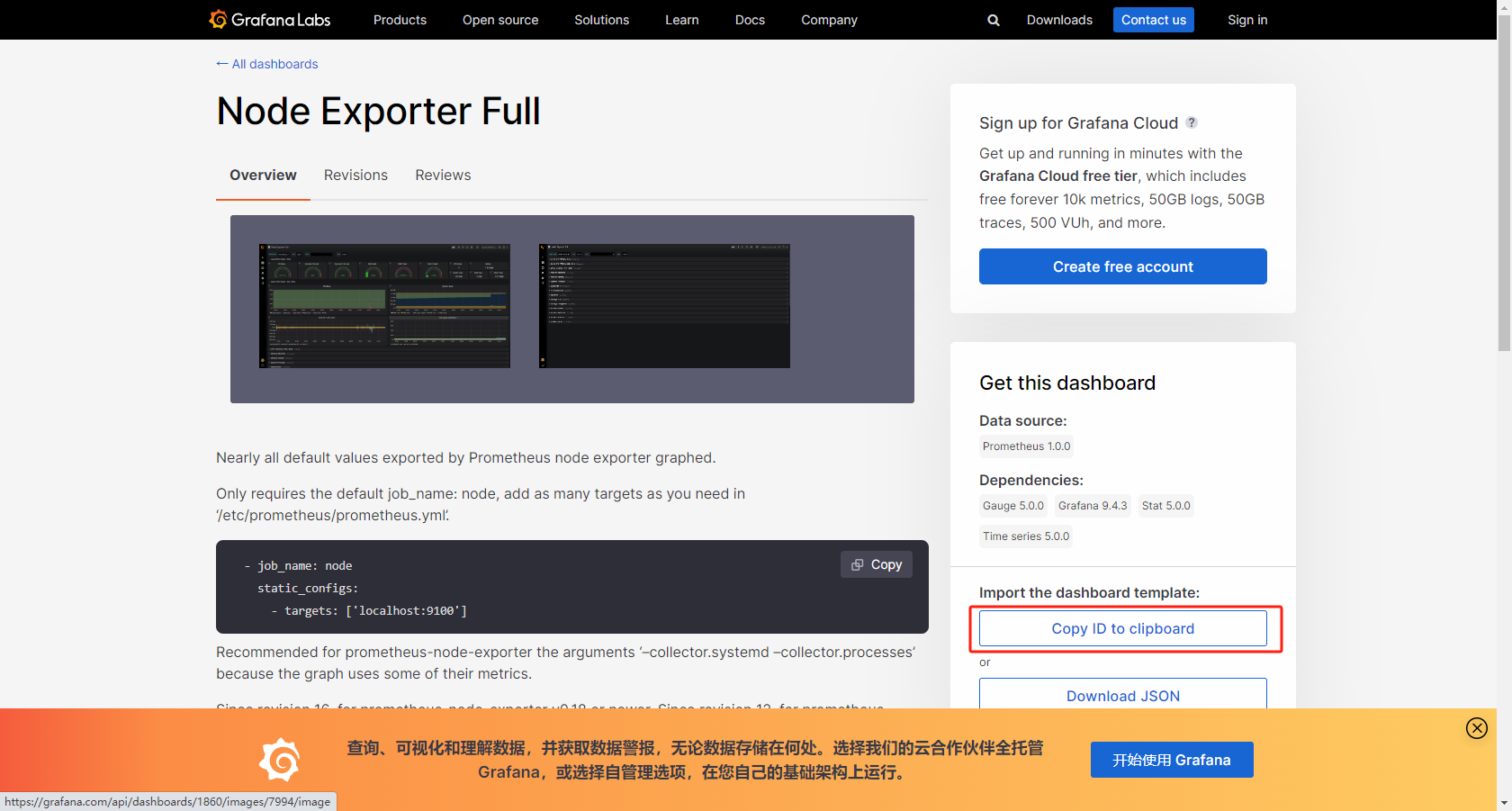 可以直接访问https://grafana.com/grafana/dashboards/路径进入官网进行复制,直接选择Node Exproter Full