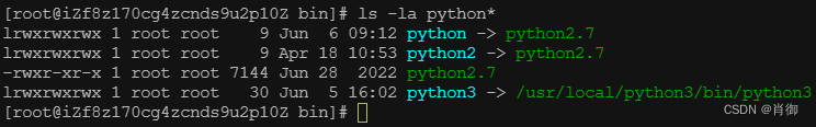ls -la python* # 查看python已存在的软连接一般情况下,如果是新建立的系统,会存在以下三个软连接