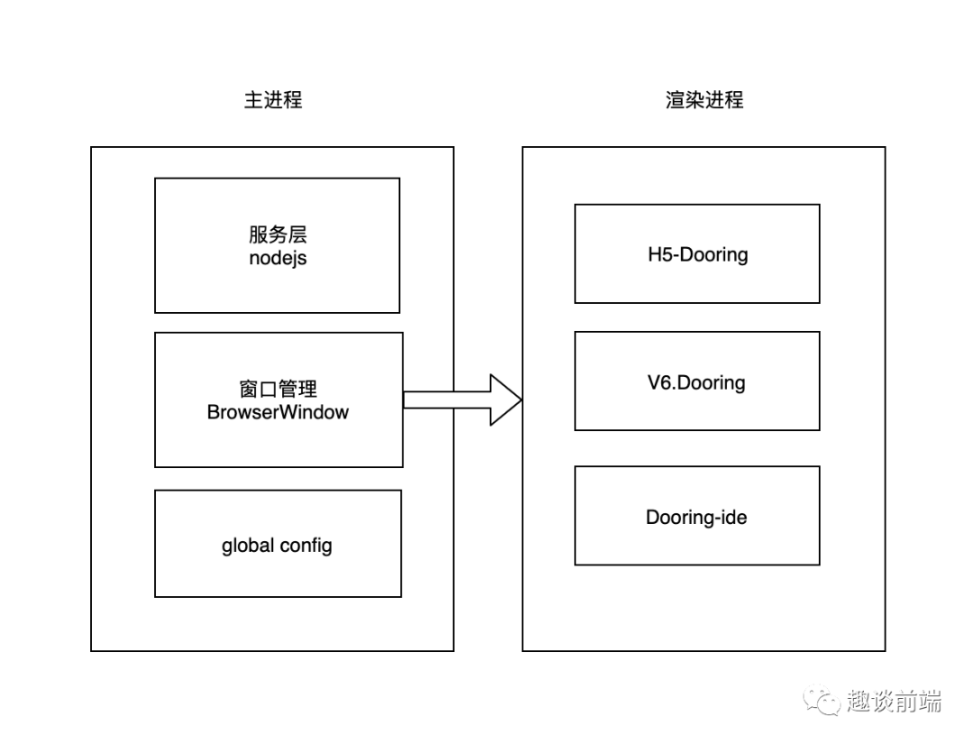有了以上基础, 我画了一张dooring-electron 的简单架构图方便大家理解: