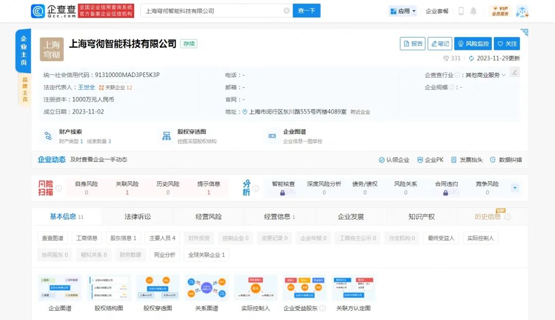 企查查信息显示,该公司于今年11月成立,注册资本达1000万元。知情人士称,该公司由非夕科技拆分而来,公司初创团队主要由非夕科技CEO王世全和上海交大教授卢策吾以及非夕科技副总裁胡晓平等人组成。
