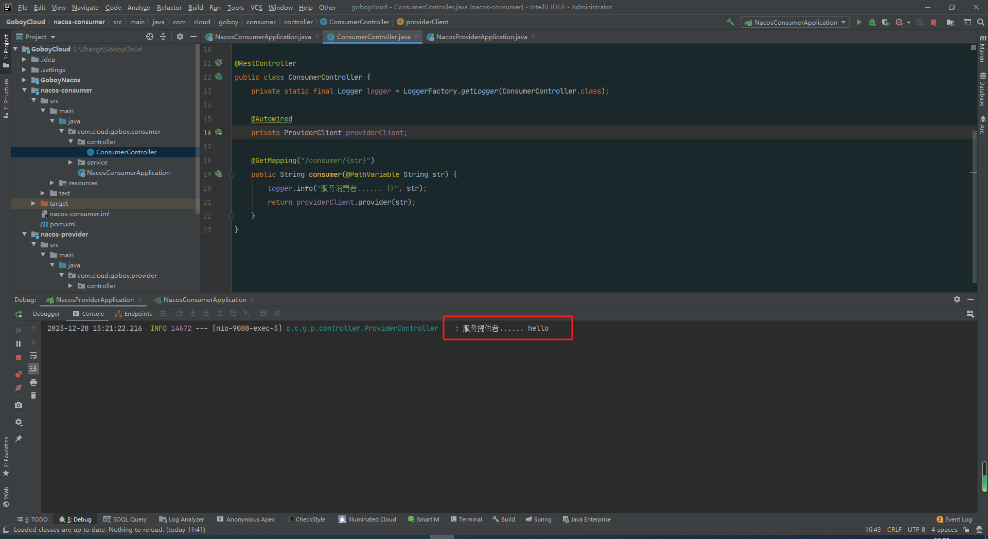 </dependency>基于上一篇GoboyCloud的基础上进行开发。其中,GoboyCloud 作为父项目,服务提供者nacos-provider作为子项目。