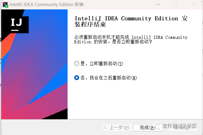 安装完成之后,我们需要重启电脑才能开始使用,我们可以选择稍后重启,如下图:
