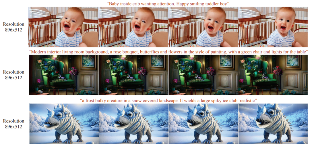 实验结果4:高分辨率生成视频,生成的视频可以参考项目主页。