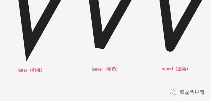 miterLimit:对斜角长度与线宽比例的阈值,在 strokeJoin 为 milter 时有效,表示为超过阈值时,尖角会变成 bevel。的效果。