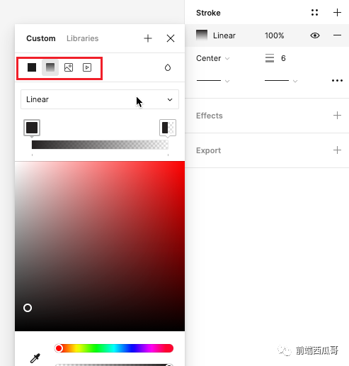 此外 Figma 还支持 IMAGE(图片)、GRADIENT_LINEAR(线性渐变)、GRADIENT_LINEAR(径向渐变)、GRADIENT_ANGULAR(旋转渐变)、GRADIENT_DIAMOND(菱形渐变)、VIDEO (视频)等 PaintType 类型。