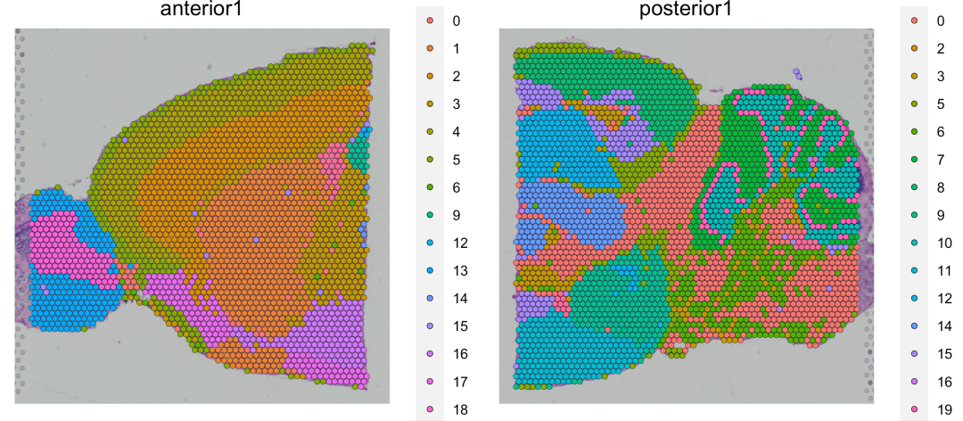 当然了,绝大部分情况下没有必要合并,因为每个样品自己的空间切片坐标信息是自己的。所以它最后的可视化仍然是每个样品独立,如下所示: