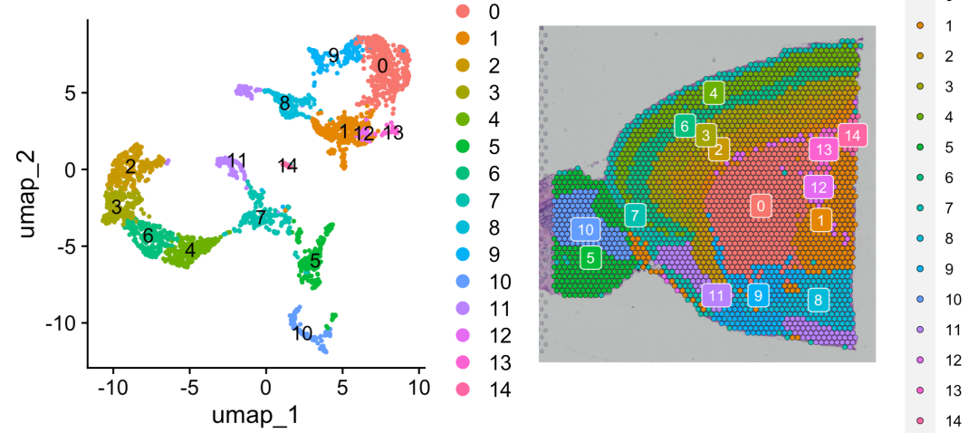 如果有了降维信息的Seurat的空间对象,就可以可视化啦。如下所示的代码: