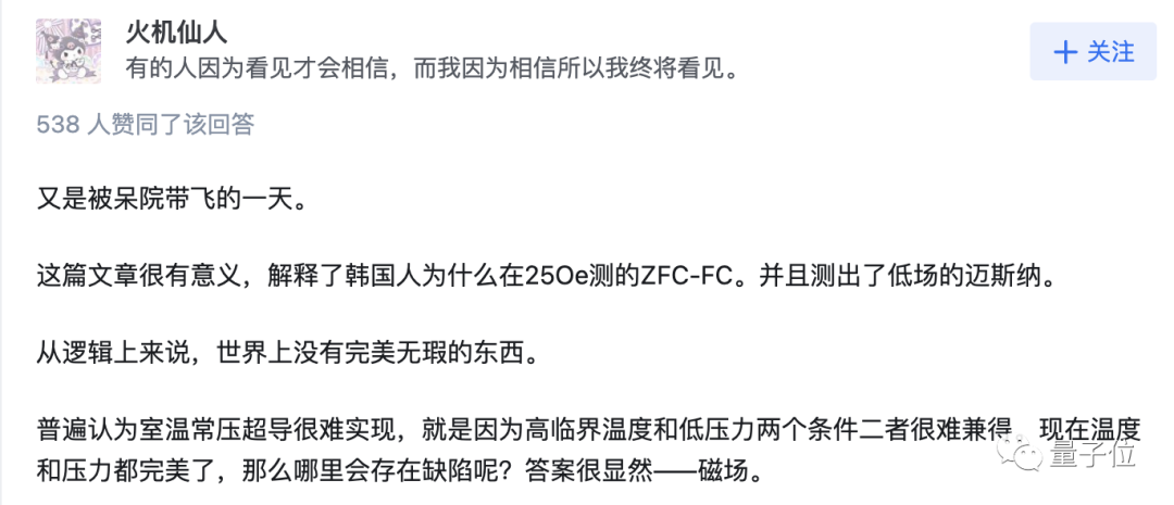 以及他认为高临界温度和低压力两个条件都完美了,缺陷显然在磁场。