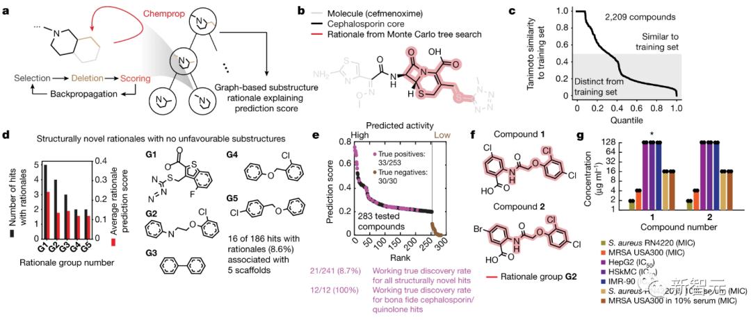 由于抗生素类别通常是在共享子结构的基础上定义的,因此,子结构识别可以更好地解释模型预测,有效地探索化学空间,并促进发现新的结构类别。