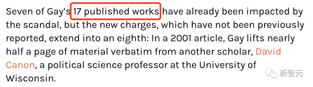 据介绍,Gay发表的17篇学术工作中,已经有7篇因为抄袭丑闻受到牵连。但最新的指控显示,她的不当行为还牵扯到了第8篇文章。