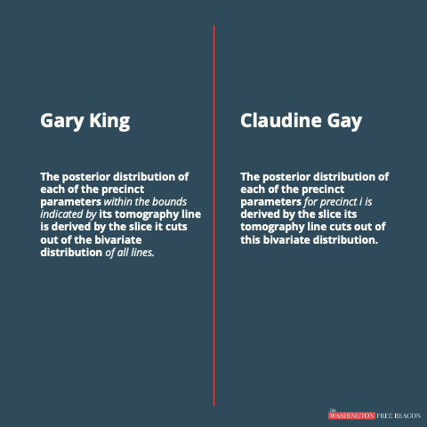 在其中一个新的例子中,从事定量政治科学研究的Gay直接复制了她的导师Gary King在描述一个数学模型时的整句话,却未在文中用括号引用King的名字,也未用引号标明是引用。