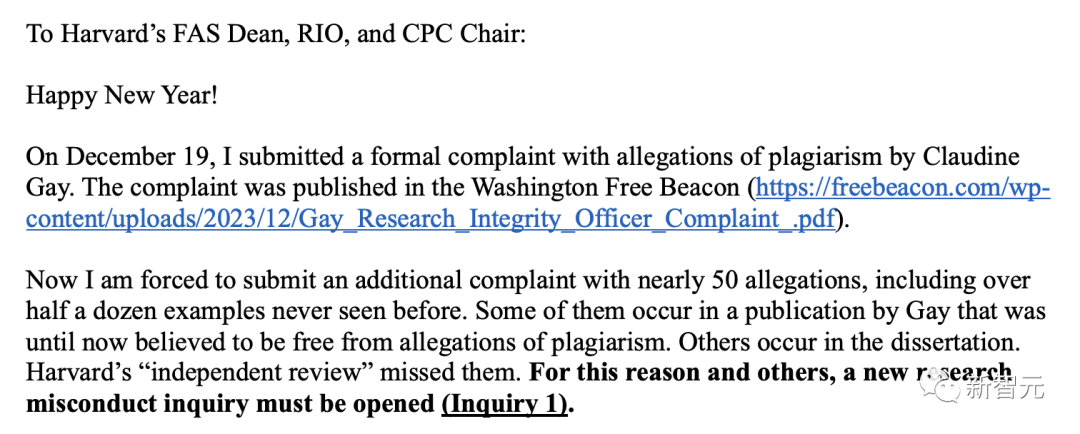 虽然哈佛大学董事会在12月中旬宣称,已经审查了Gay发表的工作并指出存在多处「引用不足」的问题,但他们并未指出新申诉中提到的任何案例。