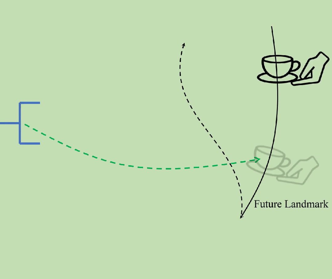 为了生成出利于蒸馏(Distillation-friendly)的专家示例,GenH2R 引入了 Landmark Planning。人手的运动轨迹会按照轨迹光滑程度和距离被分成多段,以 Landmark 作为分割标记。在每一段中,人手轨迹是光滑的,专家方法会朝着 Landmark 点进行规划。这种方法可以同时保证视觉 - 动作相关性和动作连续性。