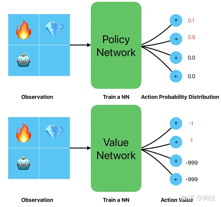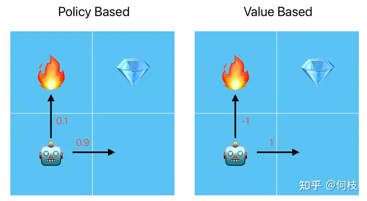其实简单来说,这 2 种流派的最大区别就是在于将行为量化为「概率」还是「值」,具体来讲: