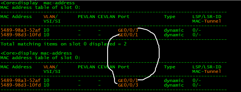MAC表 | MAC | VLAN | 原接口编号 | 现接口编号 |