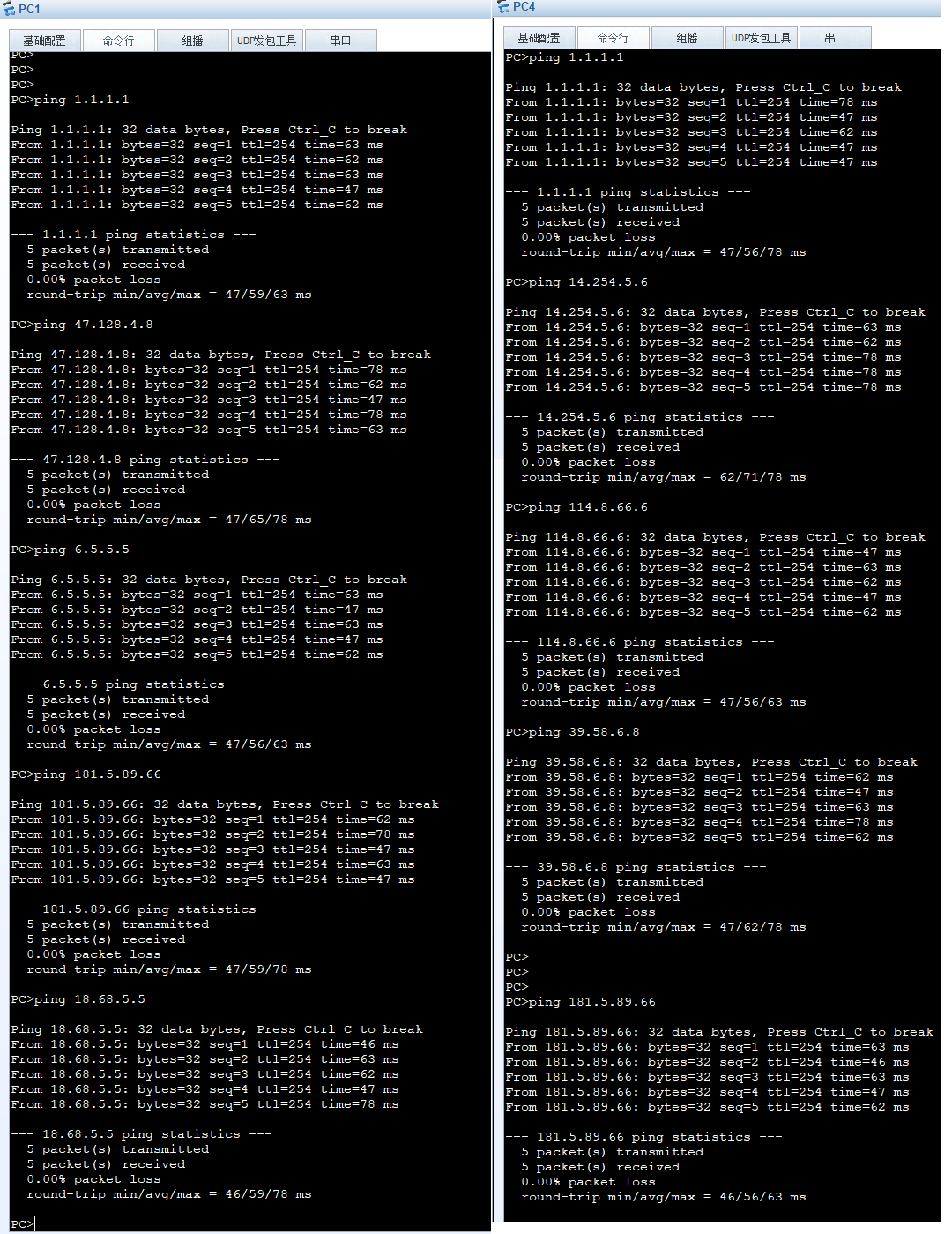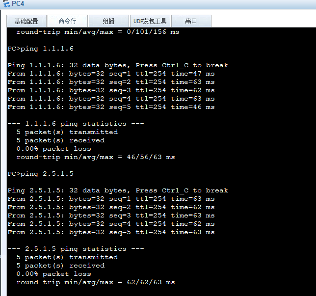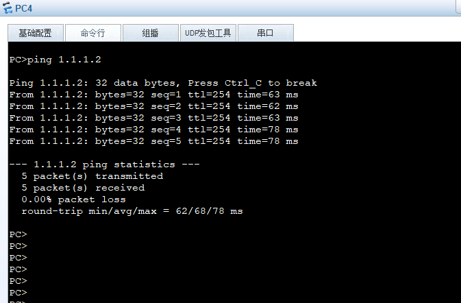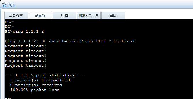 这个时候PC4去Ping 1.1.1.2就通了