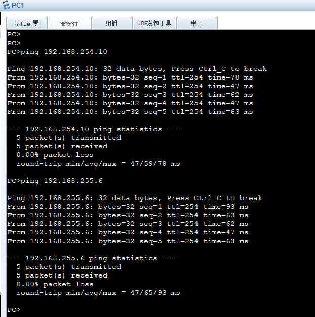 PC1属于192.168.253.50,访问内网跨网段192.168.254.10以及192.168.255.6都没问题,因为这个是同一个三层设备下面,核心A上面是有直连路由的,跟静态以及默认没任何关系,它的优先级最高。