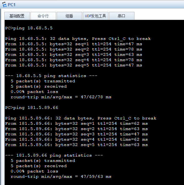 ip address 18.68.5.5 255.255.255.255 subloopback加上sub地址,一个接口就能完成这么多身后网络的模拟,完成这个后,来试试访问。