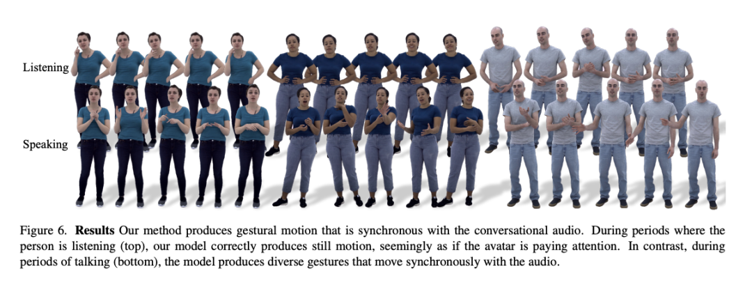 如图 6 所示,扩散模型会学习生成动态动作,其中的动作会与对话音频更加匹配。