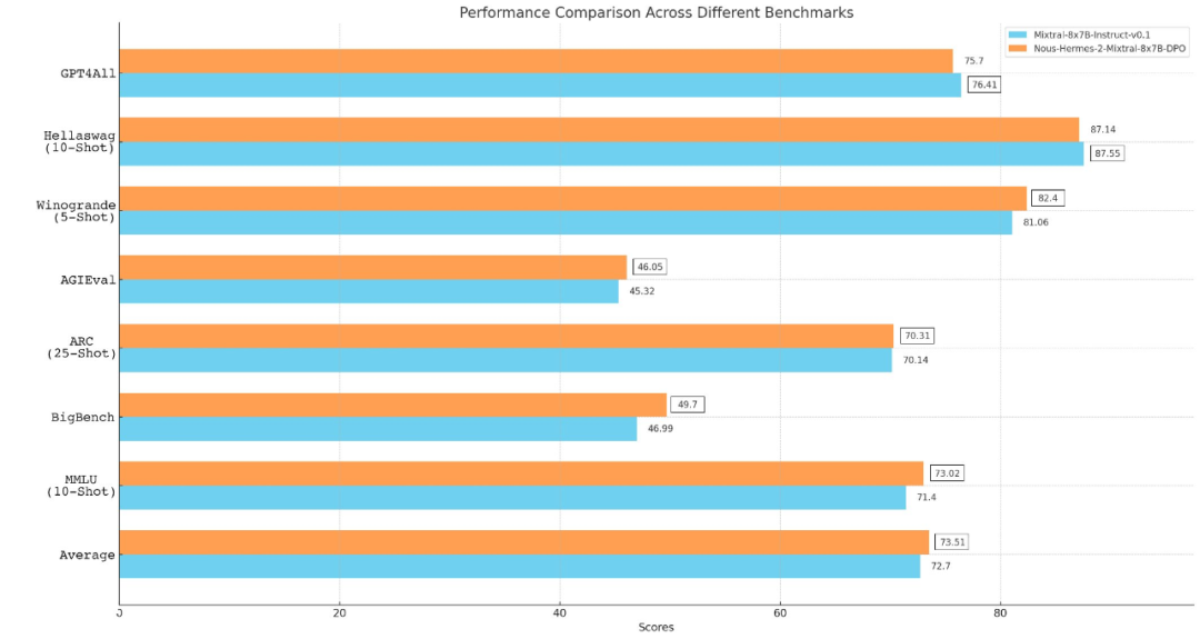 该公司联合创始人、X 平台用户 @Teknium (e/λ) 表示,「据我所知,这是第一个击败 Mixtral Instruct 的基于 Mixtral 的模型,在我个人的测试中,它可能是最好的开源 LLM 模型!」