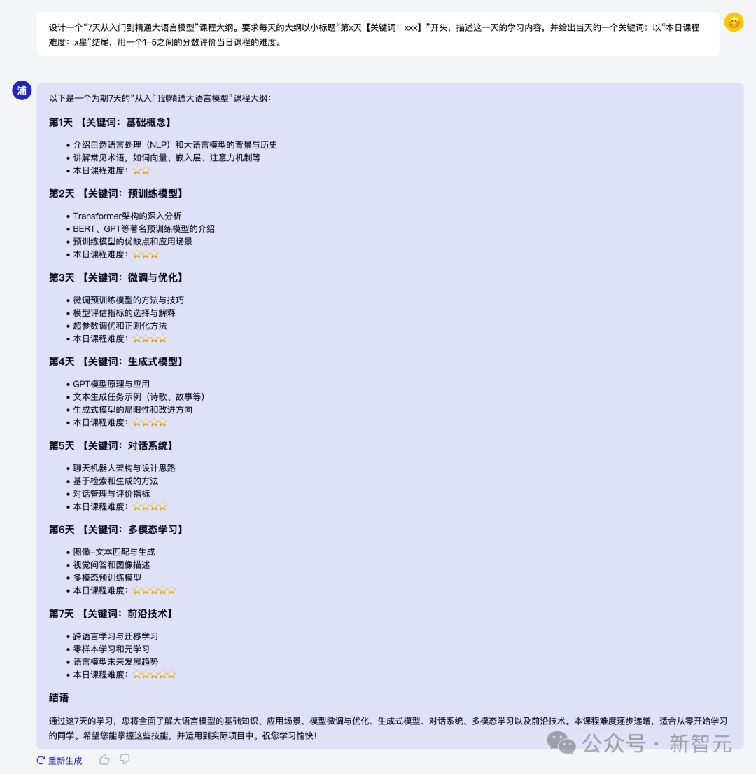 InternLM2设计的课程大纲精准遵循用户要求(比如格式、数量、内容等)