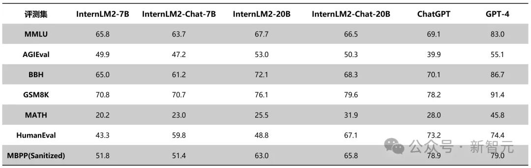 在GSM8K和MATH评测中,InternLM2-20B的表现更是超过了ChatGPT(GPT-3.5)。