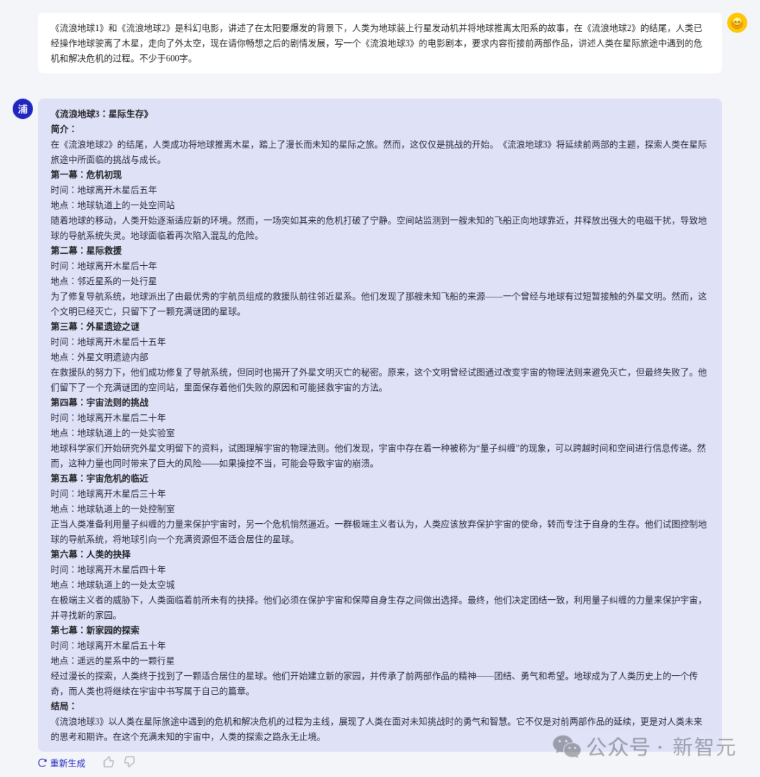 InternLM2设计的具备充满丰富的合理想象,比如外星遗迹、量子纠缠的引入等。同时整个故事表现了人类面对危机时的勇气和团结精神