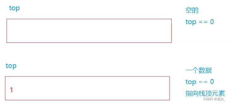 两种方法都可以使用,这里我们使用初始化top为0的方法。 注意:使用不同的方法,其他操作的实现会略微不同。