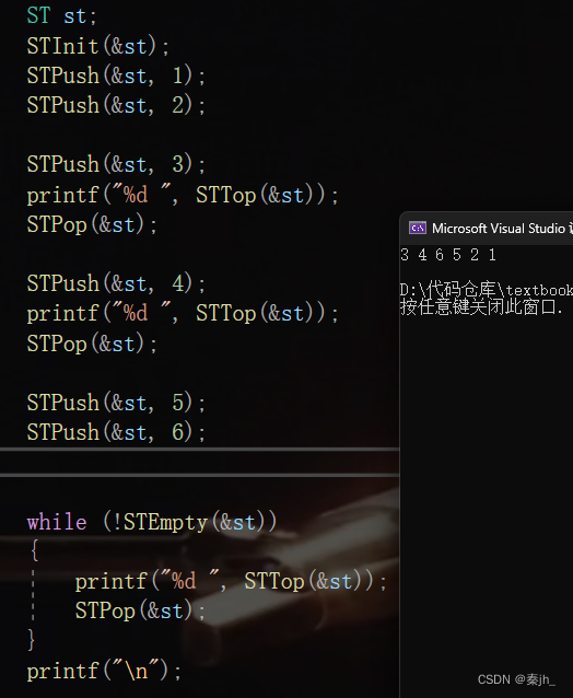 分析:当它为空时,top==0。当有一个数据时,top==1,即top是指向栈顶元素的下一个位置。