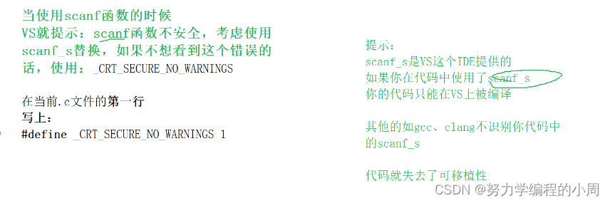 }scanf就是输入函数,printf是输出函数,都是库函数,这两个函数通常是成对使用。有些编译器不支持scanf函数,可能会报错说不安全,我们可以在源文件的最上面写上#define _CRT_SECURE_NO_WARNINGS 1。