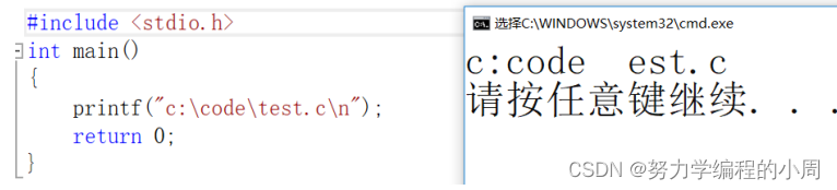 加入我们要在屏幕上打印一个目录: c:\code\test.c 我们该如何写代码?