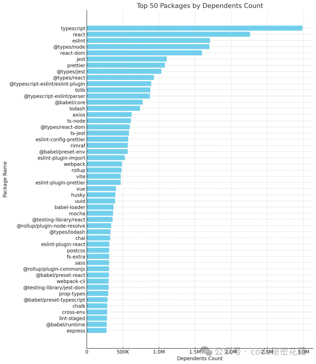 我们可以看到,npm 最常发布和使用的是哪些软件包呢?虽然 npm 最初是 Node.js 的软件包管理器,但在过去几年中,它的迅猛崛起也使其成为了 JavaScript 前端项目的事实标准软件包管理器,大部分取代了 Bower ,并在 JS 项目中实现了更统一和更流畅的开发工作流程。